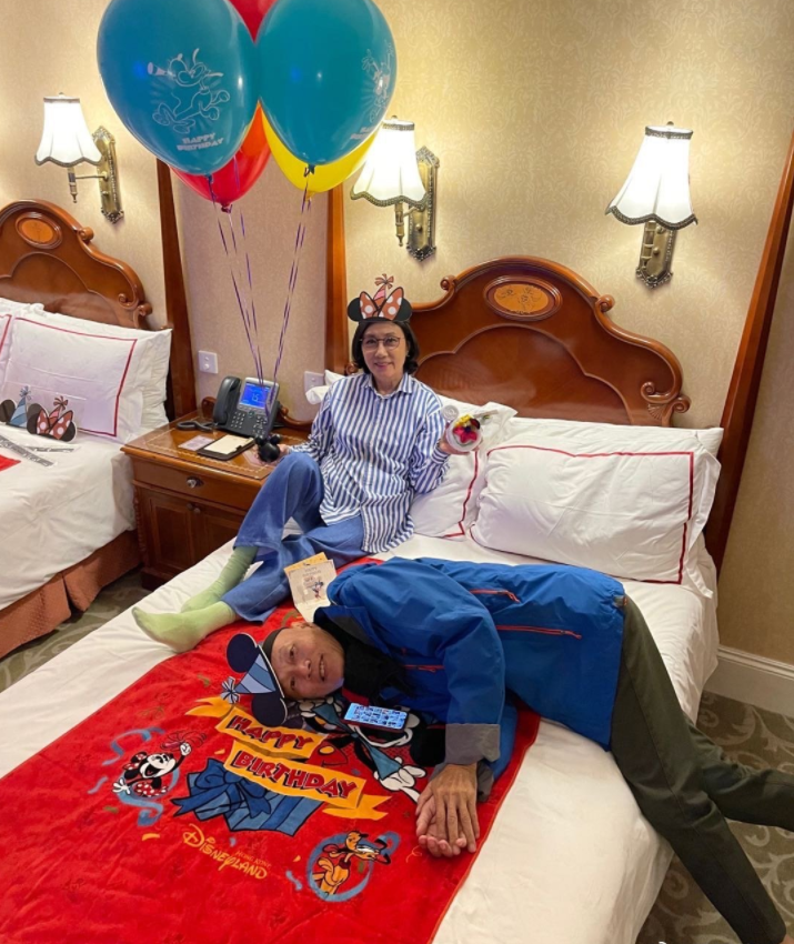 [明星娱乐]汪明荃晒74岁庆生照,与罗家英穿情侣装,住迪士尼酒店童心未泯 |
