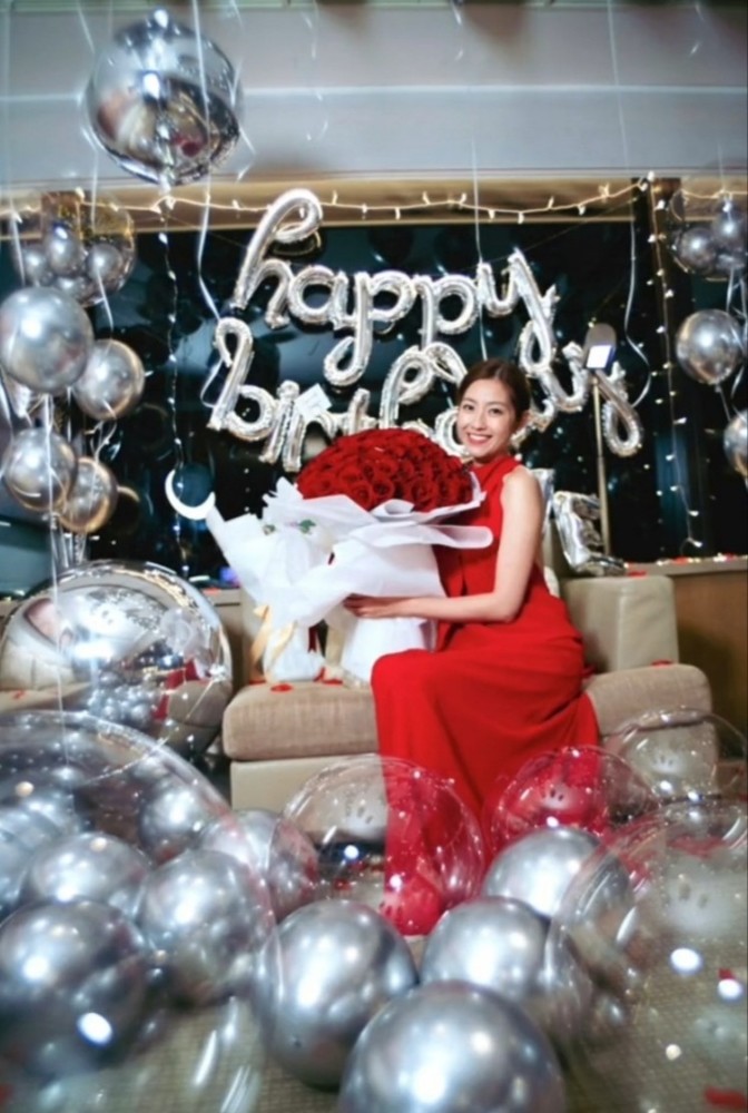 照片中,陈自瑶穿着红色连衣裙,映衬得皮肤越发白皙。她坐在沙发上,手捧着一束红红的玫瑰花,笑容甜美可人。不过全程只有她自己出镜,不见视帝老公王浩信的身影,疑似独自一人庆生。 |