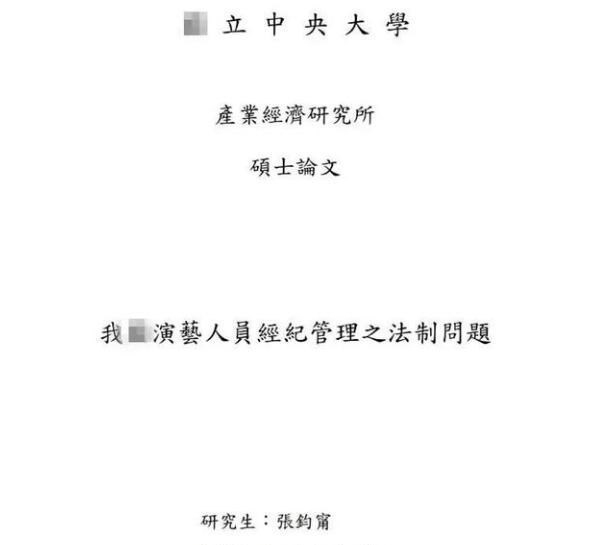 张钧甯是演艺圈的学霸,十一年前,她凭借一份高质量论文拿到硕士学位。这次“出事”同样是因为这篇论文。 准确地说,这次曝光的只有张钧甯论文的封面,文章标题是“我国演艺人员经济管理之法治问题。” 因为她把祖国的一个省称为“我国”,被质疑是立场问题的“佐证”。 |