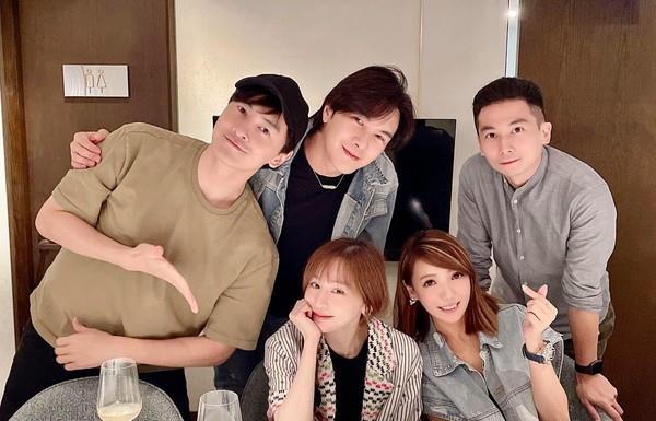 郑元畅(左1)、谢佳见(左2)、黄馨仪(右2)齐聚为王心凌庆生。(图/翻摄自王心凌脸书) |