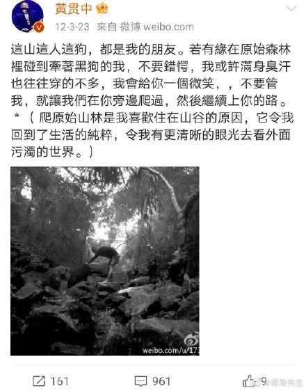 看黄贯中的微博,真的是铁汉柔情,这几条尤其: |