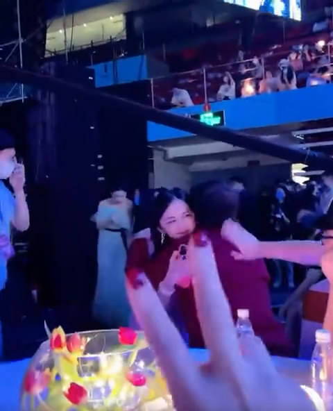 镜头扫过另一张桌子,刘恺威也在拥抱一名女士,两人似乎都有点激动,据网友透露,那名女士是TVB前花旦陈松伶。 |