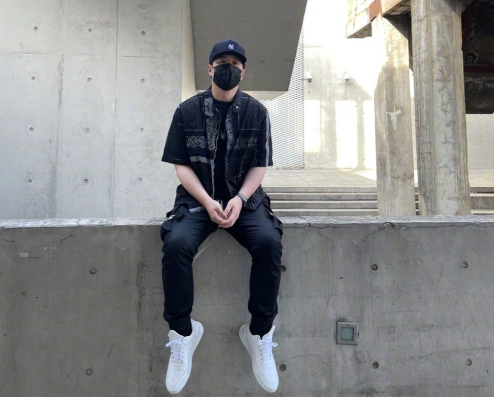 当天,潘玮柏一身黑色打扮,短袖衬衫搭配长裤,戴棒球帽以口罩遮面,脚上是一双小白鞋,看起来十分休闲。他靠在巨幅作品旁边,微微低头用手撑着下巴,将五官遮挡得严严实实,非常帅气。 |