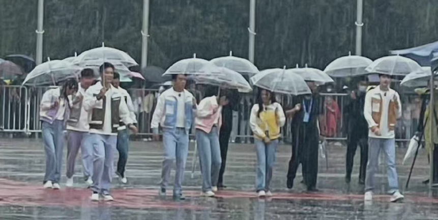在录制当天,天空下起了小雨,可热情的当地人,还坚持打着伞站在雨中,等着他们到来。随后他们穿着统一的服装,从大巴车上下来。最受关注的就是白鹿和林一,两位新成员,毕竟对跑男粉丝而言,他们是陌生的。白鹿好像有那个“社交nb症”(没有贬低的意思),撑着伞,扎着高高的双马尾,听在场群众的欢呼声,还被做成了表情包。 |
