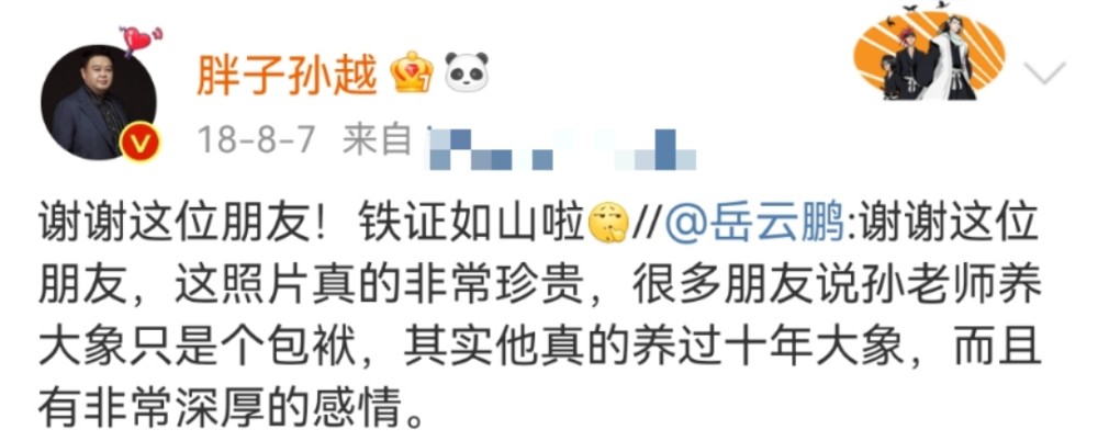 爱听岳云鹏和孙越相声的网友都知道,孙越与大象的渊源颇深,岳云鹏还曾不止一次地在相声中戏称“孙越养大象越养越瘦”,但事实并非如此。 |