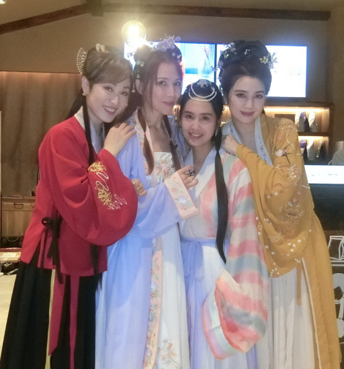 陈法蓉、洪欣、蔡少芬、朱茵四人还在节目中换上了古装,一下子就将观众的记忆带回到了那个具有独特特色的港剧年代,给不少观众来了一波回忆杀,四人亲密合照的样子让大家感受到了曾在各个剧中的美女,梦幻联动聚在了一起。 |