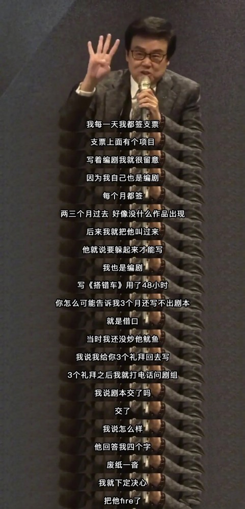 王家卫的“天才表现”,也是他一路披荆斩棘,从被炒鱿鱼的编剧,爬到香港电影金字塔顶端的资本。 成为导演之前,王家卫曾在新艺城担任编剧,那时,他的老板是黄百鸣。 黄百鸣一看王家卫,这个人真奇怪,两个月都不来公司,声称要躲起来找灵感。黄百鸣很生气,自己也是编剧啊,怎么可能3个月还写不出来? “给你三个礼拜,回去马上写出来!”于是坐等王家卫乖乖交出作品。 王家卫最后交了吗?交了,怎么样?废纸一沓…… 结局自然是被炒了鱿鱼。 |