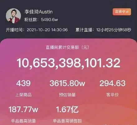 近日,一年一度的购物狂欢节又打响了头炮,网友们开始贡献碎银,网红明星也纷纷直播带货趁机赚钱。其中,李佳琦薇娅纷纷以106亿、82亿的销售额成为“巨无霸”。 |