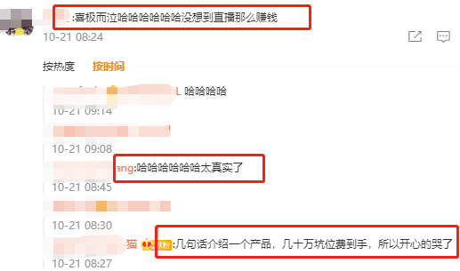 更有网友直言:“喜极而泣!几句话介绍一个产品,几十万坑位费到手了,太真实了!” |