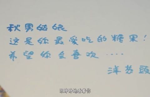 随后,任贤齐拿起糖果思索片刻,便为秋男姑娘亲手写了一封信,还原了片中的经典场面。 |
