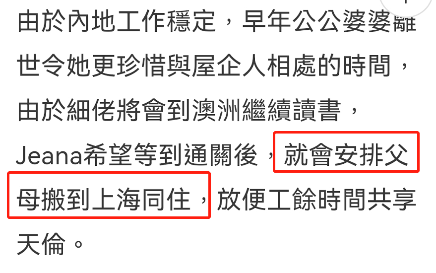 在内地工作收入高又稳定,何佩瑜萌生了将主要工作重点放到上海的想法,并计划安排父母搬到上海与她同住。 |