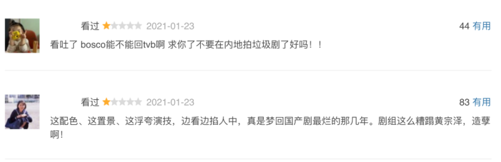 最后这部剧连及格线都没过。 之后,黄宗泽在内地拍的剧,可谓是“没有最烂,只有更烂”。 |