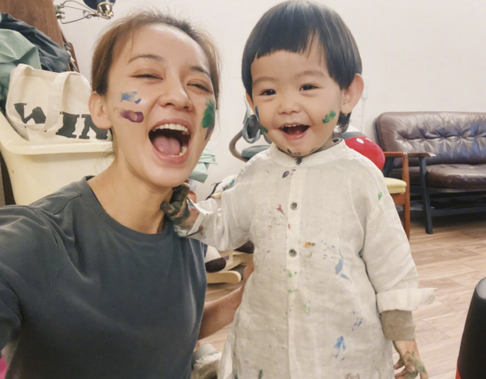 陈意涵首次分享儿子如此高清的正面照,母子俩一起玩颜料,脸上衣服上弄得到处都是颜料,儿子脏兮兮的小手放在妈妈的脖子上,陈意涵丝毫不介意,看起来比小朋友还开心。 值得称道的是小初的颜值也提高了吧,大双眼皮像妈妈,微笑时眼睛也依然很大,专挑妈妈的优点遗传。 |