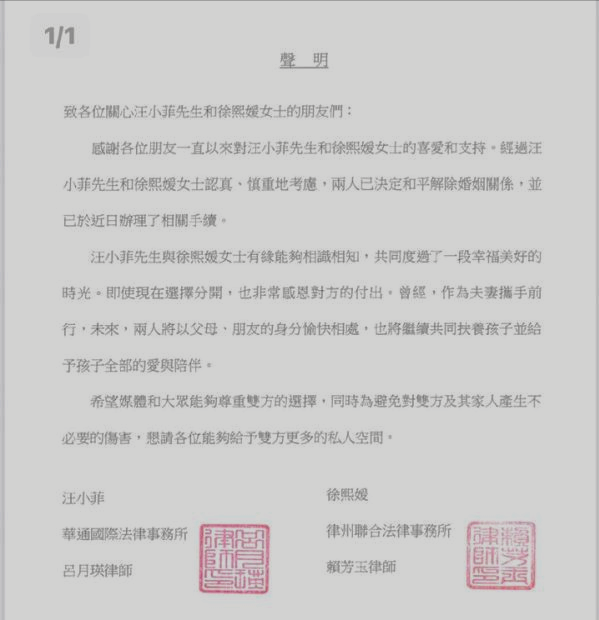 紧接着就是11月22日,大S和汪小菲发布离婚声明,表示彼此和平解除婚姻,以后会共同抚养孩子。 |