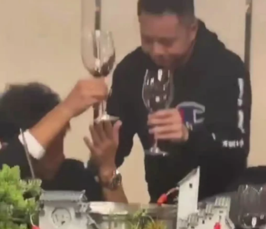 视频里李克勤穿着浅色衬衫和黑色毛衣,看起来酒过三巡眼神有点朦胧,眼皮有点耷拉浮肿,和身边穿着黑色卫衣的男子相比,显得兴致不高,即便如此,他还是爽快地将高脚杯里的酒一饮而尽。 |