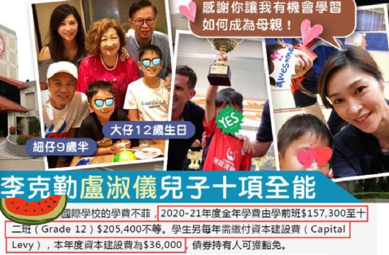 据港媒透露,李克勤的两个儿子就读于国际学校,每年学费40万。除此之外,李克勤卢淑仪夫妻俩还积极培养儿子的兴趣爱好,足球、羽毛球、国际象棋等样样精通。 |