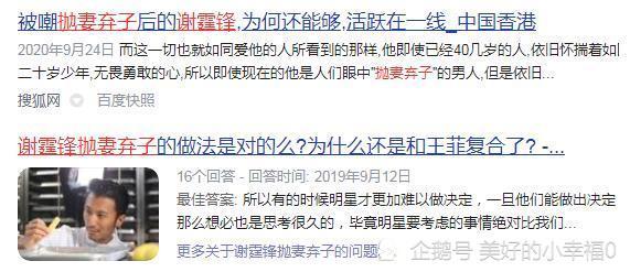 尽管许多粉丝表示支持他们在一起,但认为谢霆锋“抛妻弃子”的网友也大有人在。 |