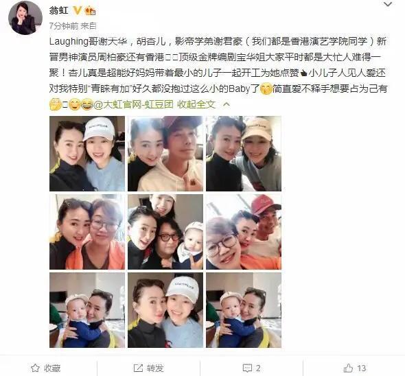 妈妈胡杏儿看到照片后似乎都被萌到了,开心留言“My little Triceratop and T. rex(我的小三角龙和霸王龙)”,还配上爱心表情,感觉满满地宠溺。 前两天,翁虹晒出和胡杏儿一起聚会的照片,当时胡杏儿也是带着儿子一起去的,翁虹还大赞胡杏儿是超能好妈妈。同时还被胡杏儿的小儿子给萌到,抱着小宝贝爱不释手想要占为己有。 |