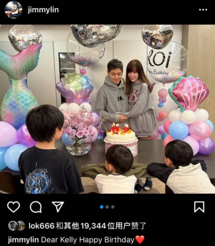 为了准备此次生日,林志颖和孩子们还一起打扮了一下餐桌,人鱼款式的珠光气球让整体氛围感拉满,超大的生日蛋糕旁边还有漂亮精致的紫色玫瑰花,看得出大家为这次生日花费了不少心思。三个孩子看着被对着镜头,肉眼可见kimi已经成为大哥哥了,身旁的两个弟弟依旧可爱地扒在桌子上。 |