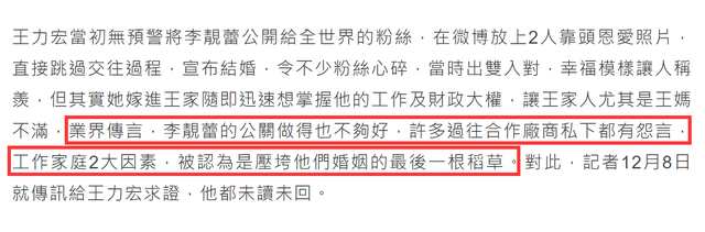 饭姐的“离婚盘点”终究还是写早了! 本以为这一年仅剩十几天,不会再闹出什么“幺蛾子”了,没想到,王力宏和李靓蕾却突然被爆出离婚,男方目前已经爽快地承认了…… |