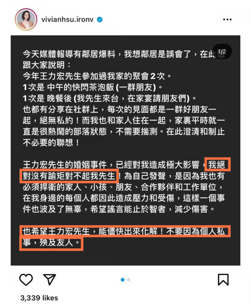 但是舆论并未因为她的声明而停止,而是持续发酵,愈演愈烈。于是在当天晚上,徐若瑄再次发文。 |
