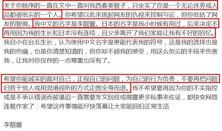 李靓蕾发出“灵魂五问”,王力宏无力招架,宣布暂时退圈 自从李靓蕾发长文揭开王力宏的真面目之后,全网都在等王力宏出面解释。结果王力宏憋了两天,憋出了一篇漏洞百出的小作文,还放话要一一回应李靓蕾长文中提到的问题。 |