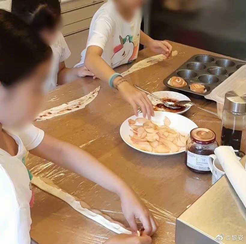 [明星娱乐]黎姿晒娃做甜点,仨女儿神情认真做工精致,动手能力强气质好似妈 |