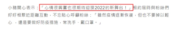 小猪的经纪人在受访时也表示,其实在今年收到了很多演出邀请。可见小猪的魅力还是挺大的,这次复出以后,相信他以后会更加地自信。 |