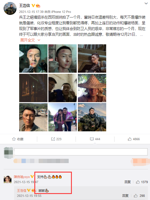 他们夫妻的感情状态有点捉摸不透,去年底他们破天荒地互动让网友直呼活久见,关系似乎破冰。 12月份王浩信上线宣传自己的新电影,谈到拍摄幕后的不易,陈自瑶评论区留言“支持”,王浩信回复“谢谢”,如此见外的互动倒让喜欢他们夫妻的网友磕到了,终于有互动了。 |