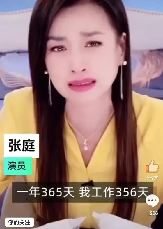 在2020年,张庭在直播间哭着说到“自己一年365天,要工作356天。”这么努力的工作就是想让粉丝们、代理商们赚到钱能成功! |
