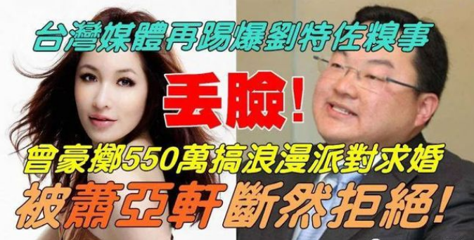 为了讨萧亚轩欢心,刘特佐还买下过报纸头版,刊登告白信息大胆示爱。他还找了烟花公司,共同策划了一场求婚。 随着绚烂的烟花在空中绽放,交响乐团也奏起浪漫的音乐,刘特佐掏出一枚大钻戒献给萧亚轩。 |