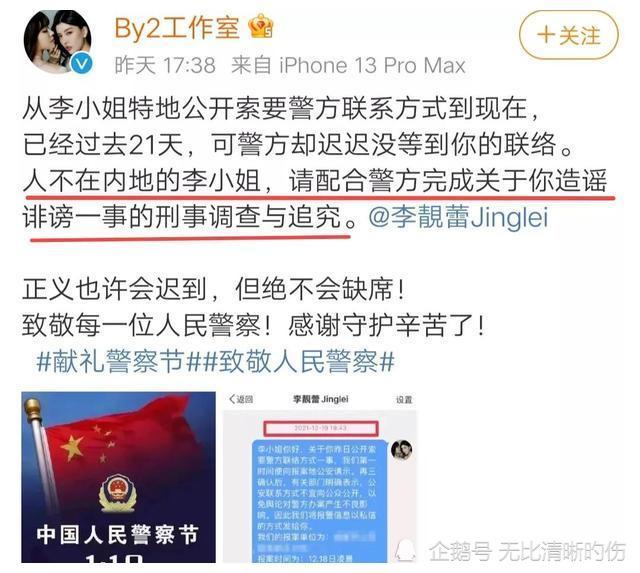 这一喊,效果确实不错,评论区里,无数支持李靓蕾的网友瞬间倒戈相向支持王力宏,希望他报警起诉李靓蕾造谣。 就在李靓蕾民心动摇的时刻,by2的孙雨乘胜追击,在警察节这天再次喊话李靓蕾。 |