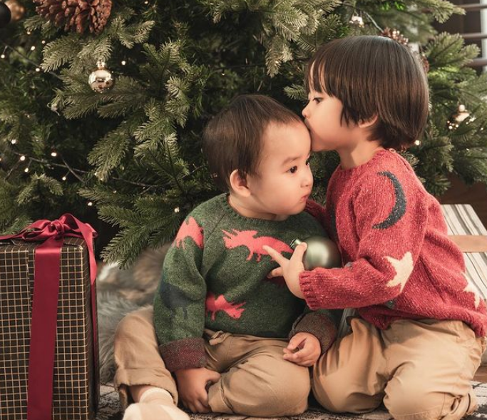 虽然大儿子才2岁,但他已经懂得如何爱护弟弟。拍照时,他亲吻了弟弟的额头,非常有爱。 |