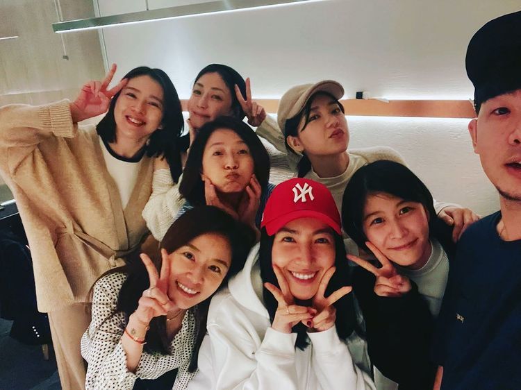 照片之中的林心如和好友们一起比起了剪刀手,她们一起聚会在一个包厢之中,每一人的脸上都带着笑意,场面十分的温馨。 |