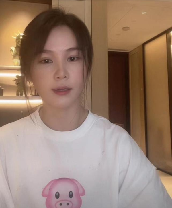 邱意浓这次是淡妆出镜,穿了一件简单的白T,衣服上只有一个可爱的猪猪头,一看就是在家里,穿着非常居家,脸上的淡妆看着干净清透,给人一种素颜的错觉,既提了起色还不算浓艳。 |