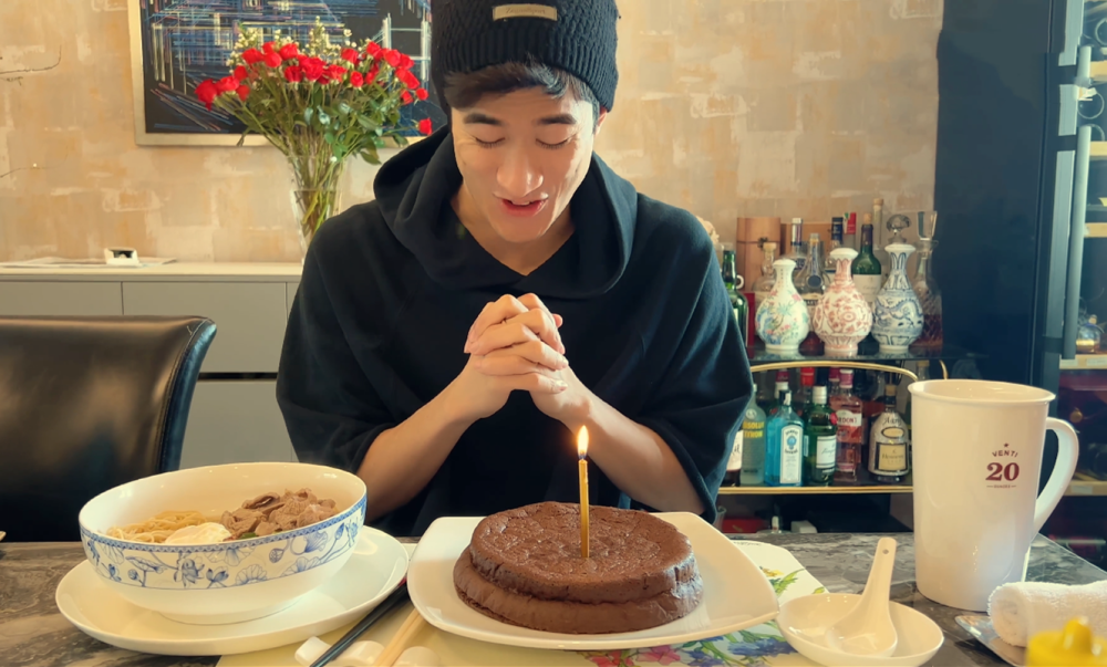 [明星娱乐]李治廷35岁生日低调度过,趁午餐时间吃长寿面,背后一排美酒抢镜 |
