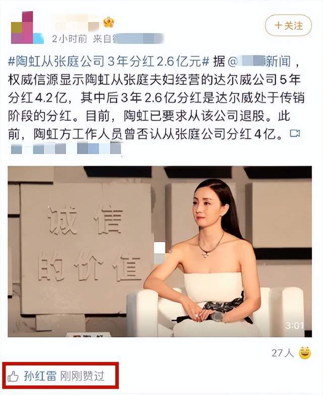 难免让人联想到一个词:大难临头各自飞。 其实也很正常,毕竟人都是自私的,都想着自己的利益。 这事一出,圈内人士孙红雷也给出了自己的态度,直接在新闻的下方,来了个大大的赞,不知道华强哥的如此行为,是因为知道点内幕,还是不小心手滑了。 |