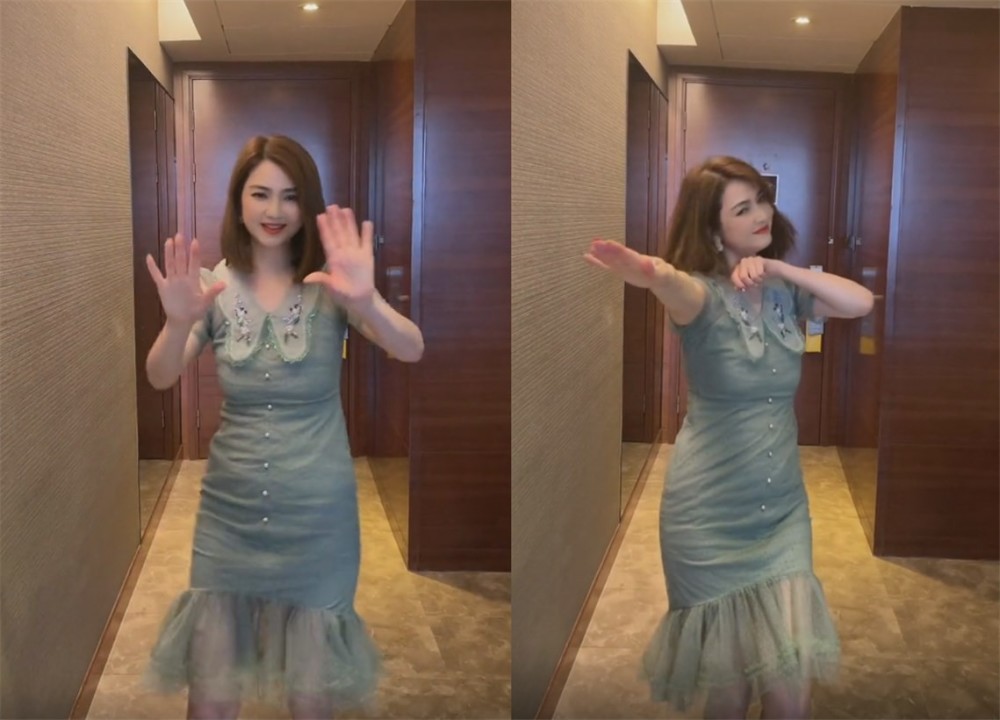 当天,洪欣身穿一件浅墨绿色紧身连衣裙,黄色短发整齐地披散在肩膀上,她的五官端庄大气,肤色白皙红唇亮眼,在滤镜的作用下,一双手臂莹白如玉,看起来非常显年轻。 |