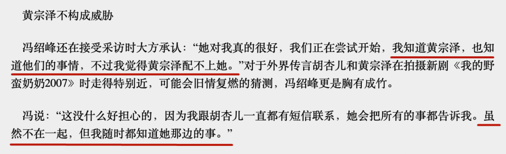 2007年,冯绍峰对着镜头霸气地说道:“黄宗泽我听过,但是我觉得他配不上胡杏儿。” 胡杏儿是港女亦是飞女,她的起点不高,虽是港姐季军,却被称是“最丑港女”。 情路也不顺,与黄宗泽苦恋八年无疾而终。 |