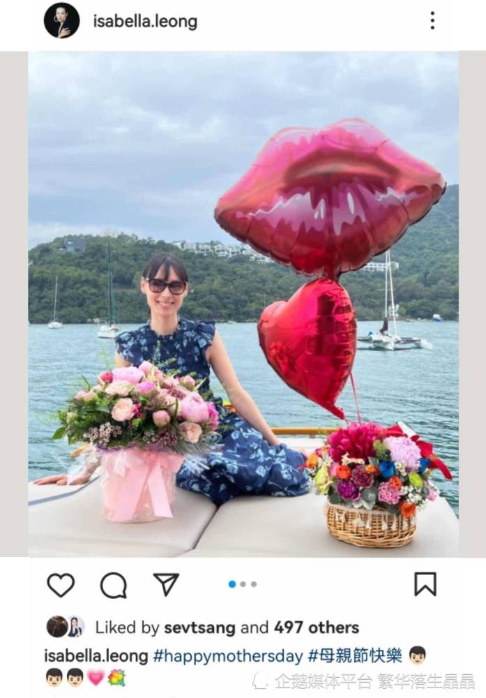 梁洛施在晒出的游艇照的下面还发文:母亲节快乐配了三个头像加上爱心和鲜花。她用三个头像暗指三个儿子,爱心指的是李泽楷,鲜花就是指收到鲜花礼物的自己,向外界展示一家5口大团圆,在一起享受幸福快乐的时光。 |