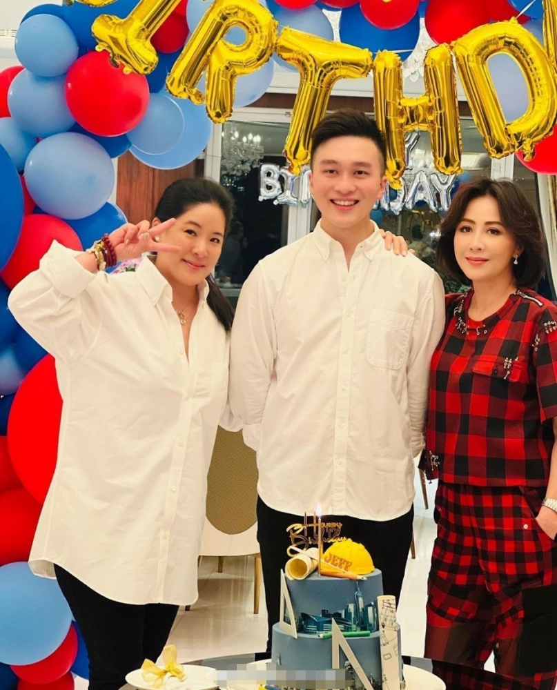 看得出是有专门去准备生日,身后的房间中都挂满了气球和生日字母,看起来生日聚会准备得很隆重啊!刘嘉玲就跟女王一样一样,站在侄子身边只要合影就好,脸上笑容都不带变一下的! |