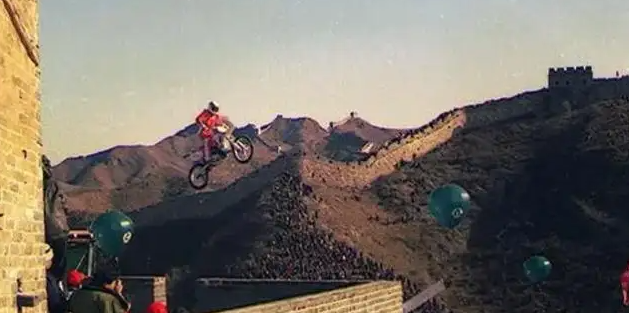 从前别人总以为他的奋力一跃是为了功成名就,但随后大家才恍然大悟,原来“起飞”只是他的一点小爱好罢了。 自从成功飞过大峡谷以后,黑哥就在挑战极限的路上越跑越远。 1992年,小黑把目光投向了万里长城。 雅马哈250CC型摩托车的引擎声躁动的轰鸣,速度是100迈,心情是自由自在。 在大批媒体和狂热粉丝的注视下,柯受良越过长城烽火台,平稳地落在了仅有4米宽的接应台上。 |