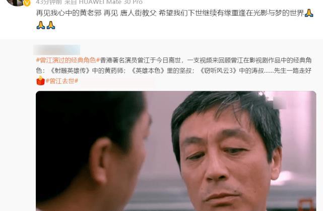 自从曾江老师去世后,工作室这段时间一直发布曾江生前的采访或视频,也是用此方式缅怀他,工作室悲痛送别曾江老师:“此别已无再见,此后余生再无您,您长眠,我常念,我最尊敬的曾江老师您一路走好,您曾说过,您的人生过得很爽,愿您在天堂也是。 ” |