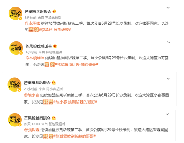 如今《浪姐3》正在热播,而根据知情网友爆料,《披哥2》将无缝衔接《浪姐3》,目前正在准备中,将于本月月底开始初舞台的录制。 相比之下,《披哥2》的保密工作要比《浪姐3》做得好很多,距离节目录制还有几天时间,但关于这档节目嘉宾的网爆信息非常少。 而在近日,博主芒果粉丝后援会相续爆料出了部分嘉宾名单,目前他总共爆料有十三人,其中有四人是去年参加第一季的哥哥,并且有三人是大湾区哥哥,他们分别是陈小春、林晓峰、张智霖和李承铉。 |