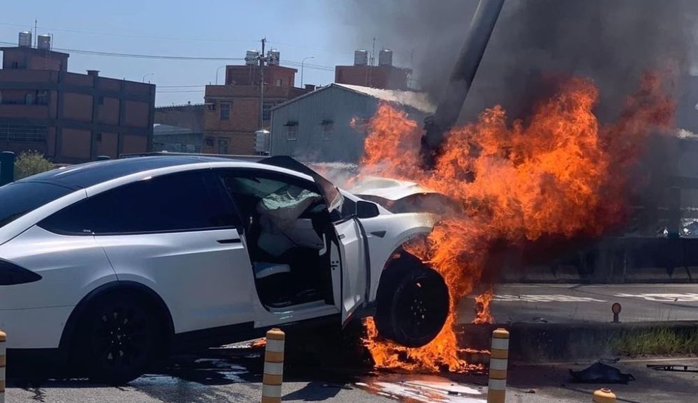 报道称,意外发生在当天上午10点51分,一辆白色特斯拉电动车行经中正北路中正桥往桃园方向时,疑似自撞分隔道和路牌,车辆将路牌撞歪,可见撞击力度非常大。 |