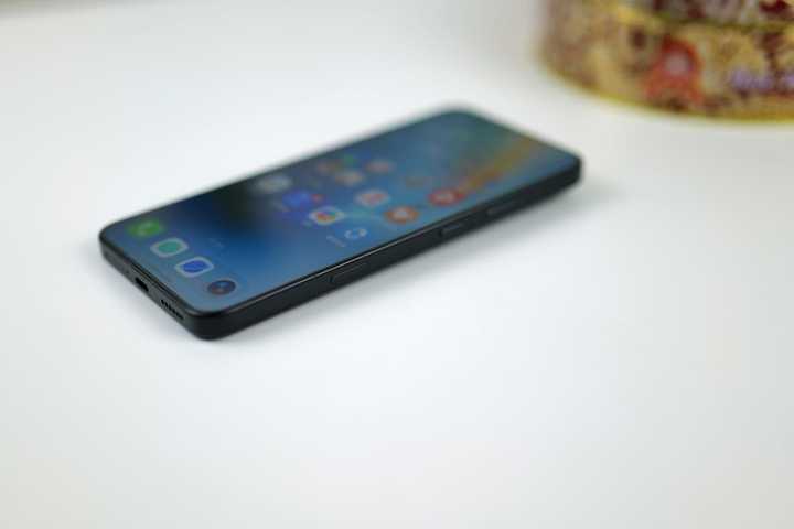 手机正面屏幕为直屏,四边等宽,屏占比很高。 |
