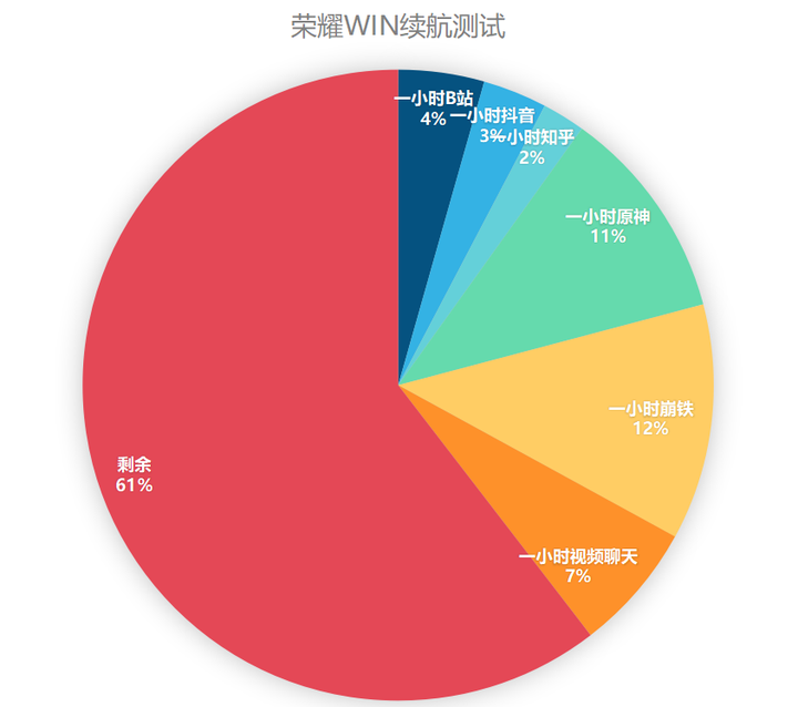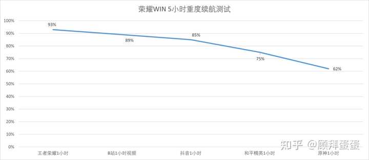 通过身边人的充电宝重量的数据来看,基本和荣耀WIN的重量打平,但这里面有一个前提 还要说一句,荣耀WIN系列的这两款机器,在配备10000mAh大容量电池的基础上,还做到了与主流旗舰机一样的重量与轻薄,如果与相同容量的充电宝作为对比,你还会发现充电宝除了电芯和外壳之外没有其它的零部件了,而荣耀WIN则还有警惕模组、屏幕、内存、处理器、主板等等。 你要抛开这些零部件去看这块电池,荣耀似乎还有更多的发展空间。 但至少对电竞玩家而言,再也不用为续航而担心,也不需要带充电宝出门。 说实话,测续航这件事真的很苦恼,现在的手机电池容量越来越大,据说看某个电视剧能连续看40个小时,我相信大部分人没有手机挺的时间久,尽可能的还原日常用机使用需求,我记录了续航曲线: 其中有涡轮风扇智能模式,WiFi、蓝牙、NFC、定位、5G联通卡、50%亮度、50%音量,因为荣耀WIN主要方向是电竞手机,所以几乎都是游戏高耗电场景。 大电池只是能满足更长时间的用机体验,如果功耗控制的不好也是白搭,这次荣耀WIN全系都内置了能效增强芯片E2,能够更好的控制手机能耗,让你从从容容的畅玩游戏。 |