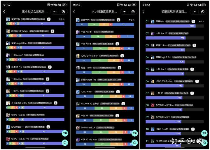 不瞒大家说,测试续航直接把我测试吐了,尤其是在刷知乎这种文字平台和抖音这种视频平台,感觉刷了好久也不见电池电量下降。 大家要注意,无论是《原神》还是《崩坏:星穹铁道》,都是在最高帧率下(原神120帧、崩坏:星穹铁道60帧)进行的测试,如果按照默认设置(即低画质和低帧率),续航成绩会更好,大家如果要买这部手机的话,自己一测就知道我有没有吹牛了。 |