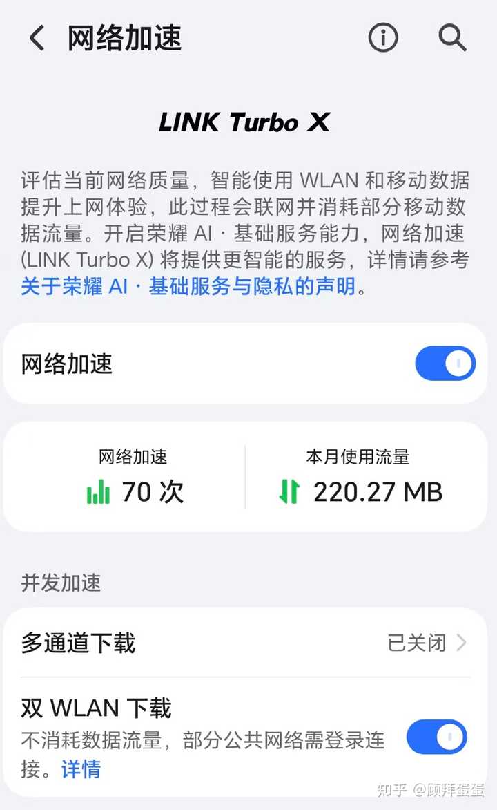 关于通信 如果你经常处在有WiFi的场景,经常处于高质量5G信号覆盖区域,你是无法理解网络质量差的体验,或者说你挤过北京的地铁,你就能明白我能顺利的刷抖音就已经是谢天谢地了。 荣耀WIN关于通信这一块可以分为LINK Turbo X加速以及电竞引擎加持的网络加强。 简单来说网络加速这边是依靠AI预测网络环境波动,提前智能切换网络,比如WiFi和5G,如果你有两张电话卡是不同的运营商,它会进行运营商的自动切换,其中荣耀优速通的加速非常显著,比如地铁、机场这种复杂的环境它会默认加速,当然这种需要开会员才能体验到的VVIP,荣耀直接买单。 |