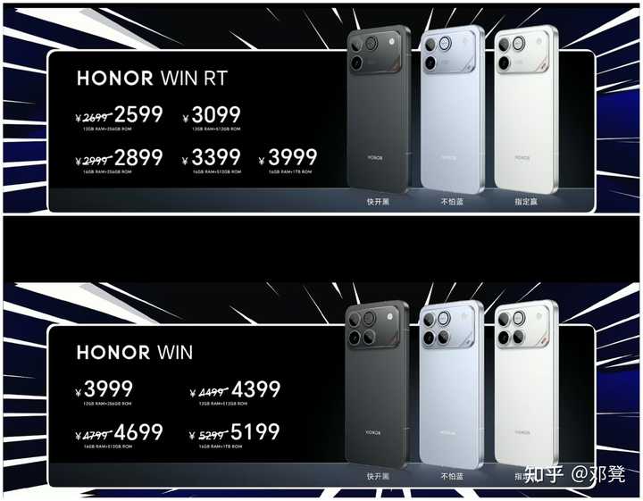 我本人有幸提前拿到了真机,经过这一周的使用体验来看,面对同类型手机,用“降维打击”来形容荣耀WIN系列可能还真的不过分,做出这样的判断是因为荣耀WIN系列在性能和续航方面拥有同级别无可比拟的优势,就如题目中描述的那样,荣耀WIN拥有10000mAh电池,这在手机史上还是头一次出现。 大家先看一下价格: |